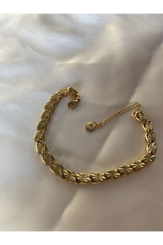18 Ayar Altın Kaplama Paslanmaz Çelik Çizgili Arpa Bileklik