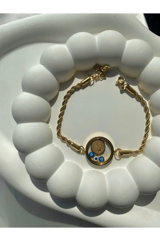 18 Ayar Altın Kaplama Nazar Boncuklu Camlı Burgu Burma Bileklik
