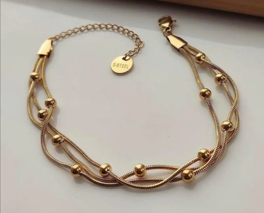 14 Ayar Altın Kaplama Üçlü Gold Paslanmaz Çelik Dorika Bileklik